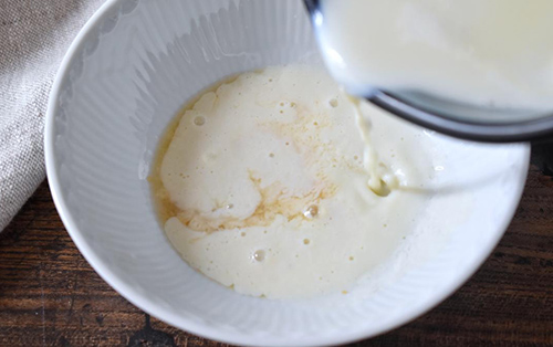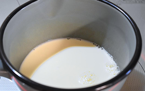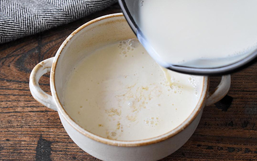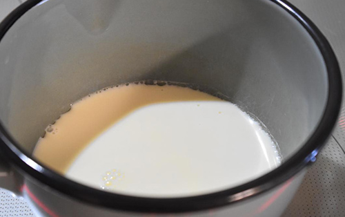 - 豆乳を器に注いだらかき混ぜずに少し置く