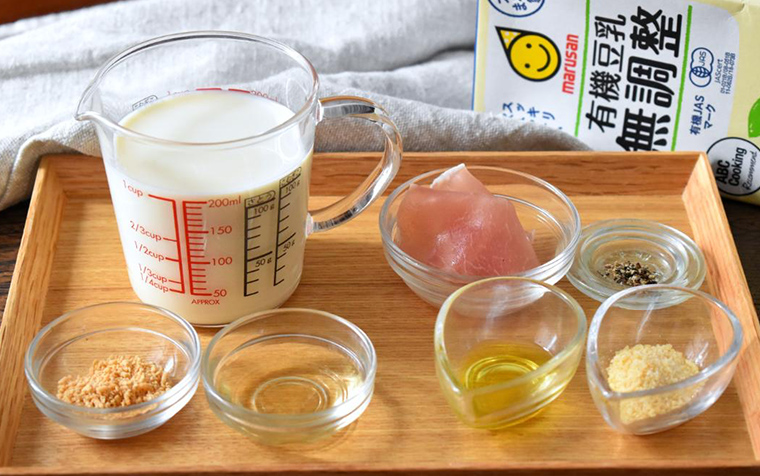 マルサンアイの公式サイトで紹介している、鶏肉入り台湾風豆乳スープのレシピ。シェンドウジャンに鶏むね肉をプラスして、ボリューム・栄養面ともに満足できるメニューです。