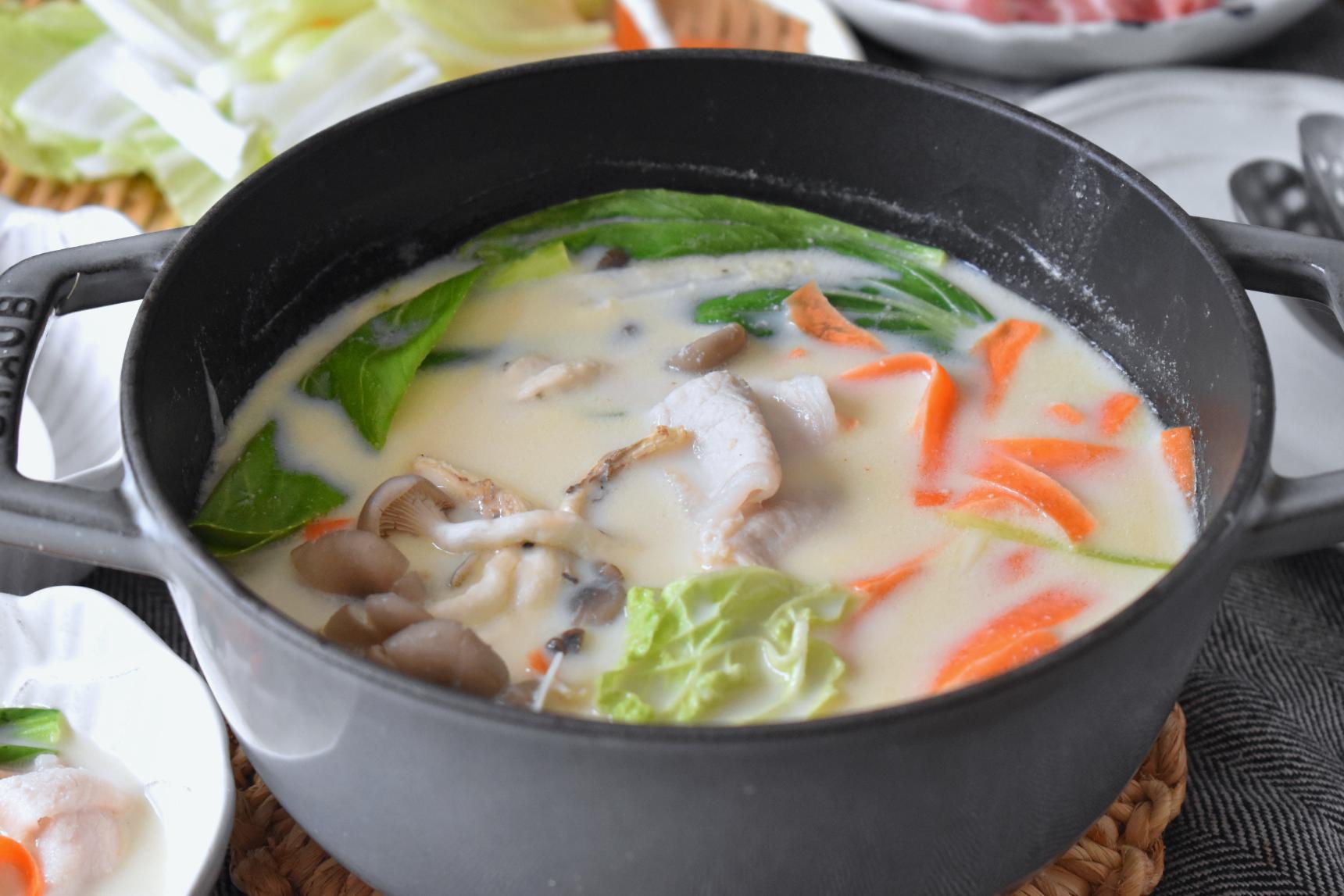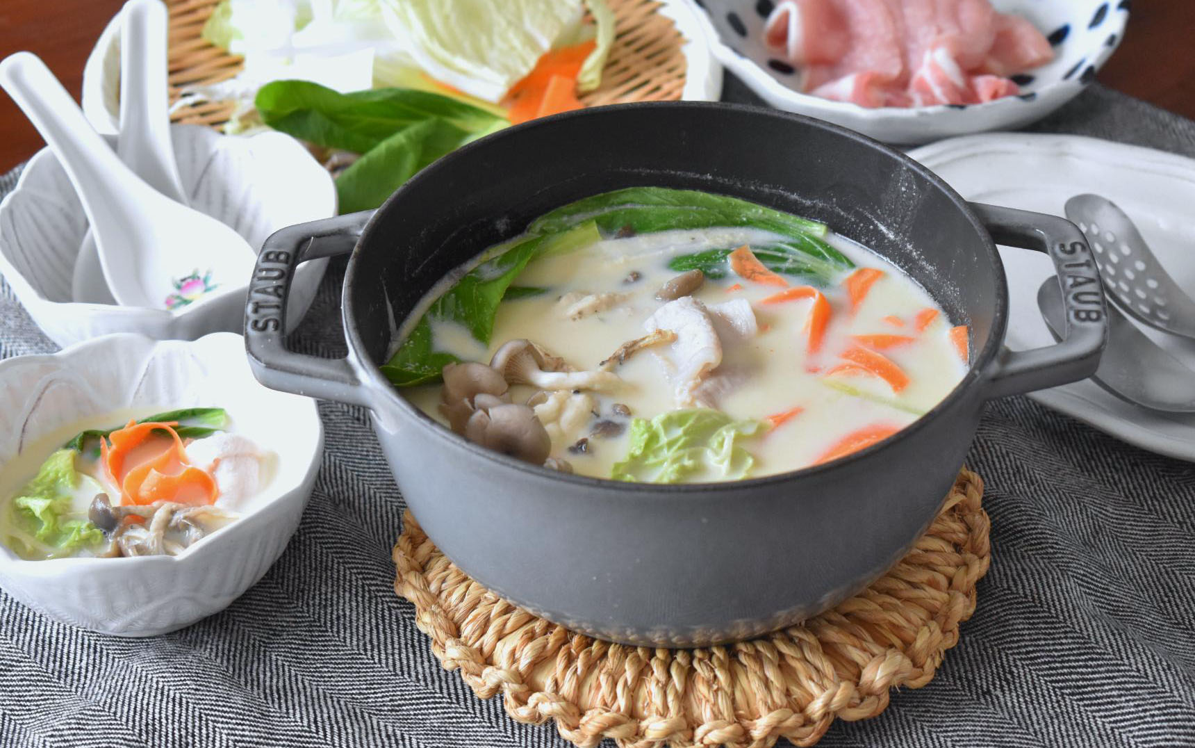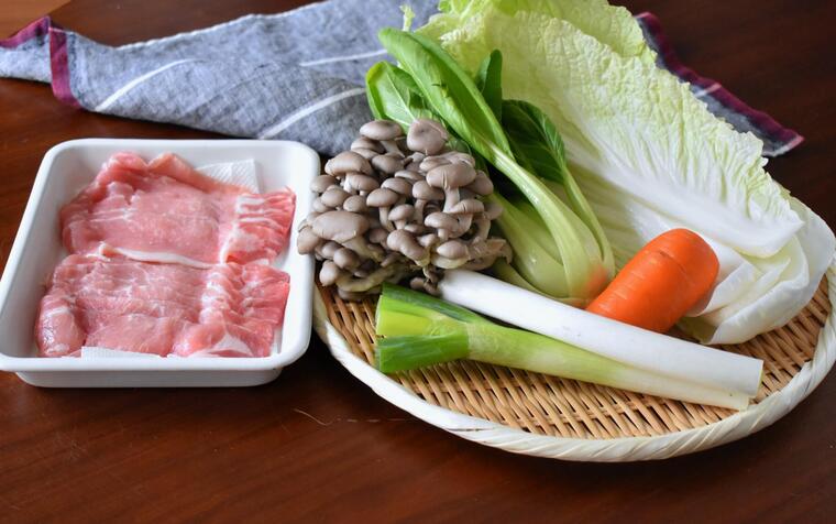 鍋の具材は、豚肉の代わりに鶏肉や白身魚などもおすすめ。野菜はお好みのものを使ってOKです。