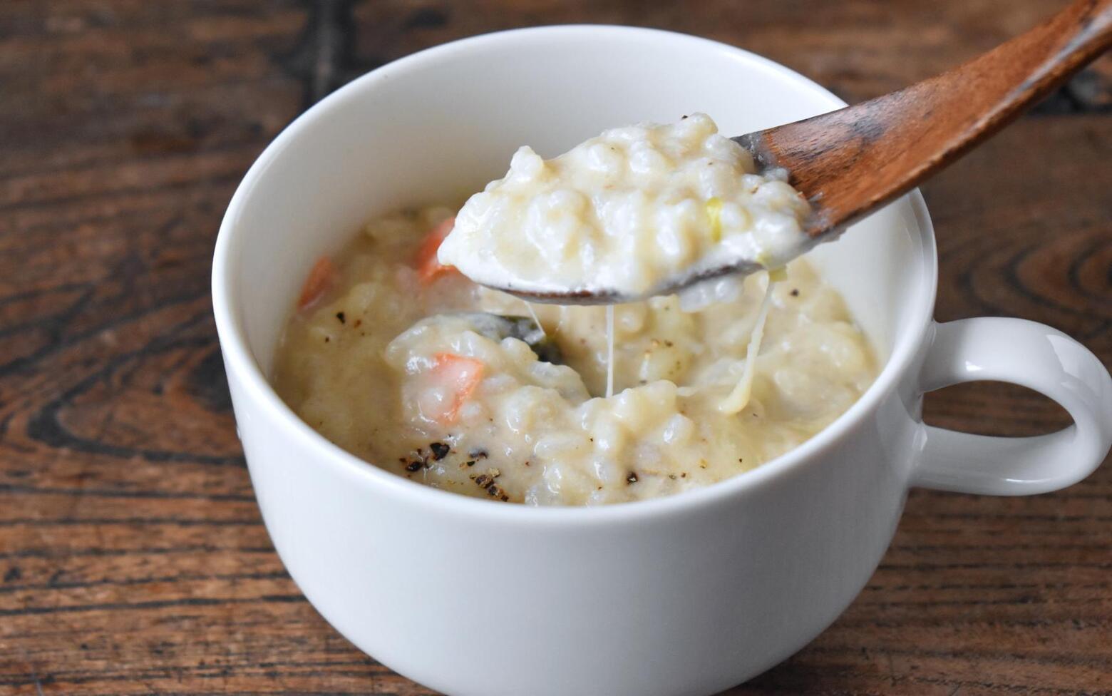 残りのスープにごはんとチーズを加えれば、チーズリゾットに変身。またうどんやパスタなどのめん類もよく合います。明太子を入れたり卵黄をトッピングしたりするなどのアレンジで、自由に楽しみましょう。