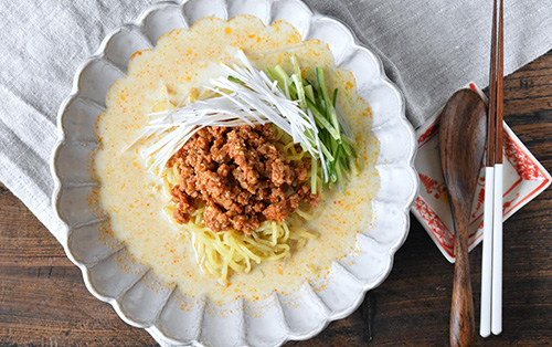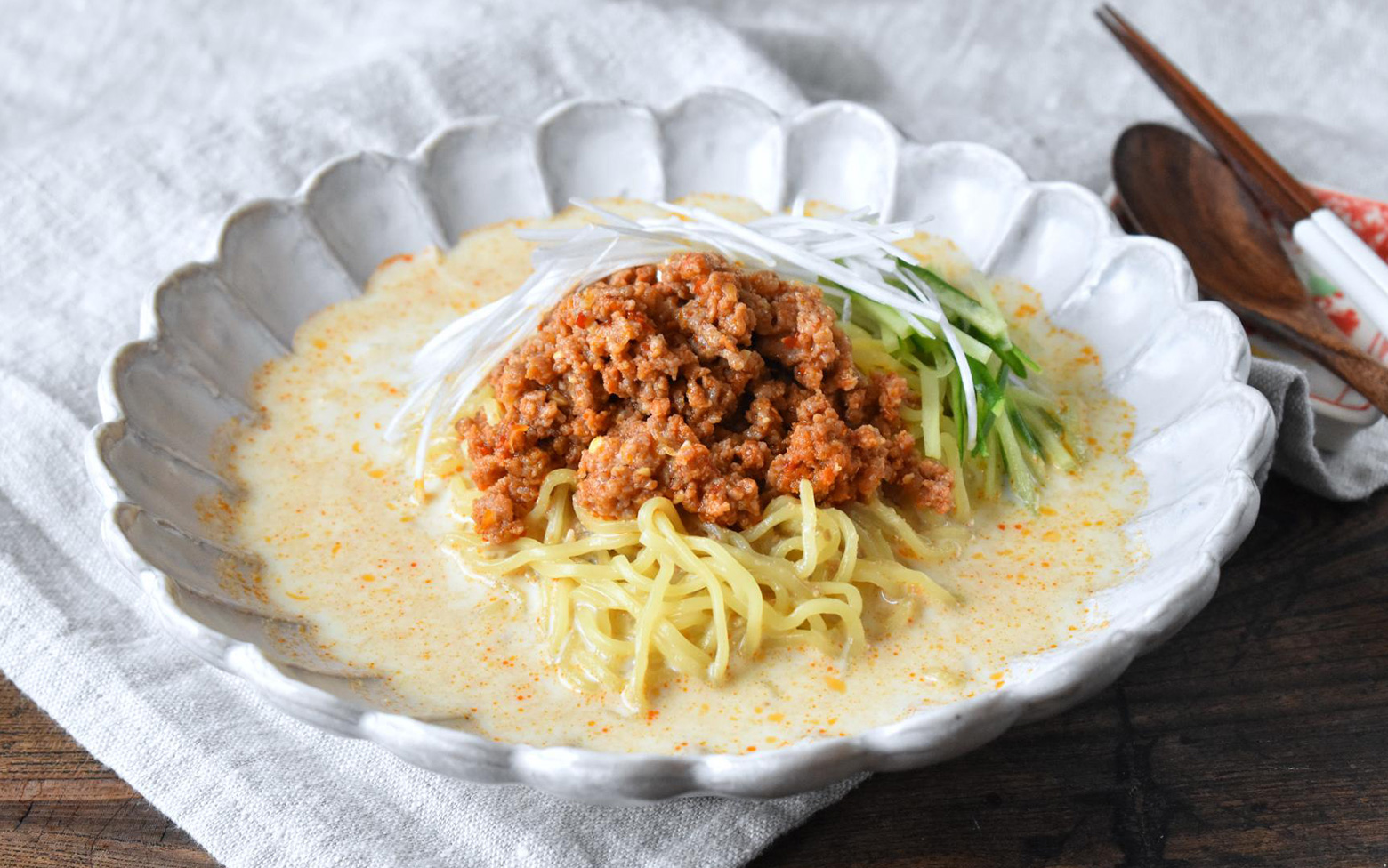 無調整豆乳ならではの、自然な甘味と深いコクがおいしさの秘密。豆板醤やラー油でピリっと辛味を効かせるので、熱い季節の食欲増進にも役立ちますよ。
