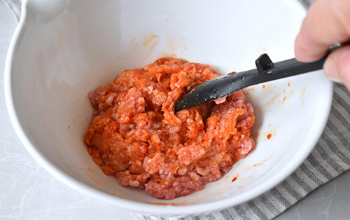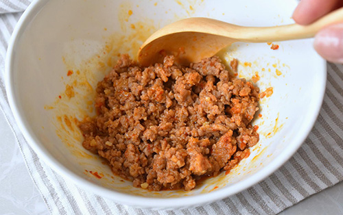 ボウルに肉みその材料を全量入れて、よく混ぜ合わせます。