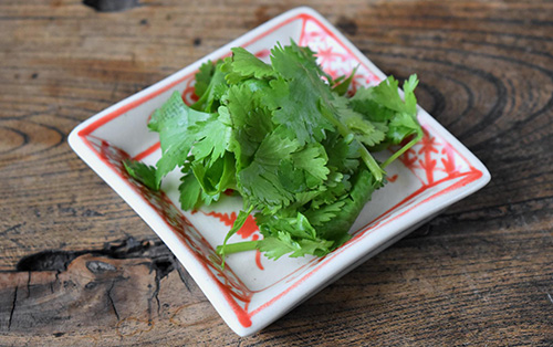 パクチーを添えることで、東南アジアなテイストに。食感もよく、清涼感のある味わいを楽しめます。苦手でなければ、たくさんトッピングして召し上がれ♪