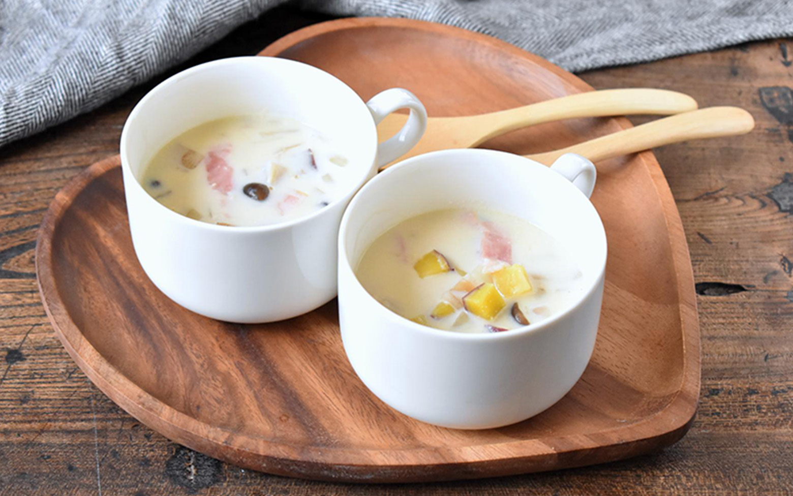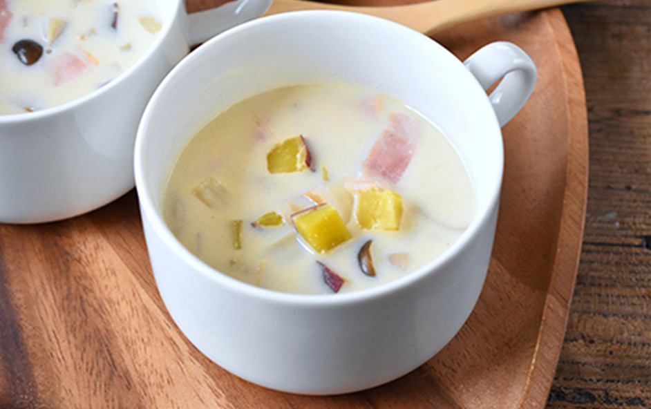 少しとろみを加えることで、やさしい口当たりに仕上がります。さらに根菜類を使うことで、噛み応えと食べ応えも感じられる一品に。バターのほのかな香りが広がり、豊かな気分を楽しめますよ。煮立てると分離しやすい豆乳を、きれいなスープに仕上げるコツも要チェックです♪