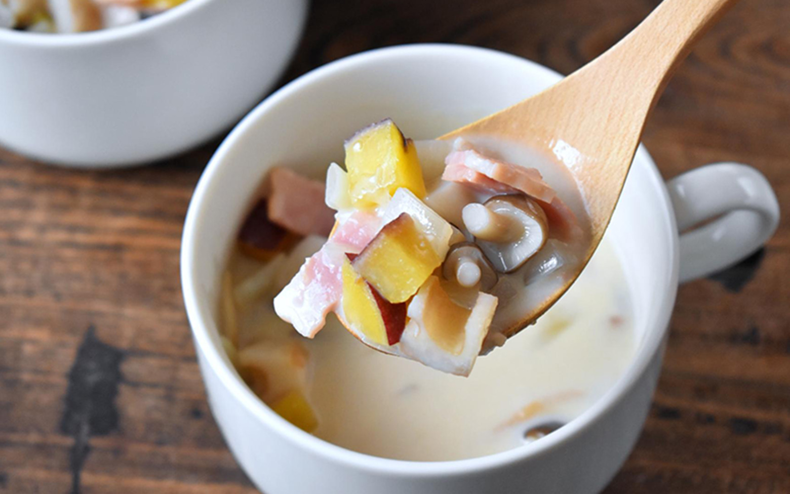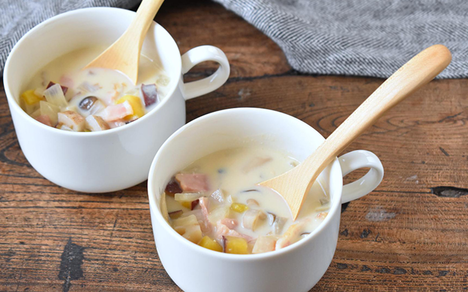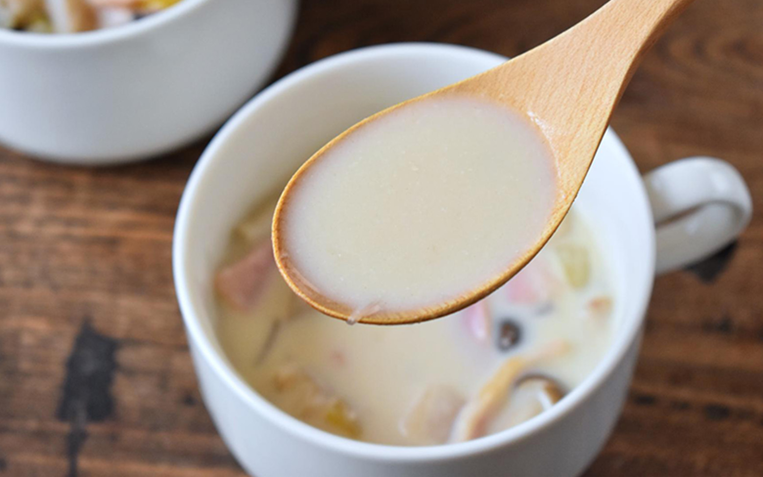 ベーコンやバターといった洋風の食材と、豆乳、みそ、和風顆粒だしの組み合わせは和洋折衷の味わい。パンにもごはんにも合わせやすいことも、おすすめポイントのひとつです。