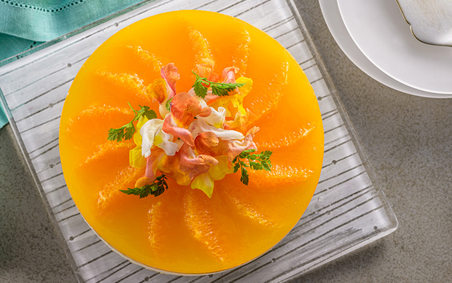 柑橘好きさんにおすすめしたい、オレンジをたっぷり使ったムースケーキ。鮮やかなビタミンカラーのケーキは、みんなをハッピーな雰囲気にしてくれるでしょう。豆乳でつくった練乳を使用し、まろやかな味わいに仕上げています。