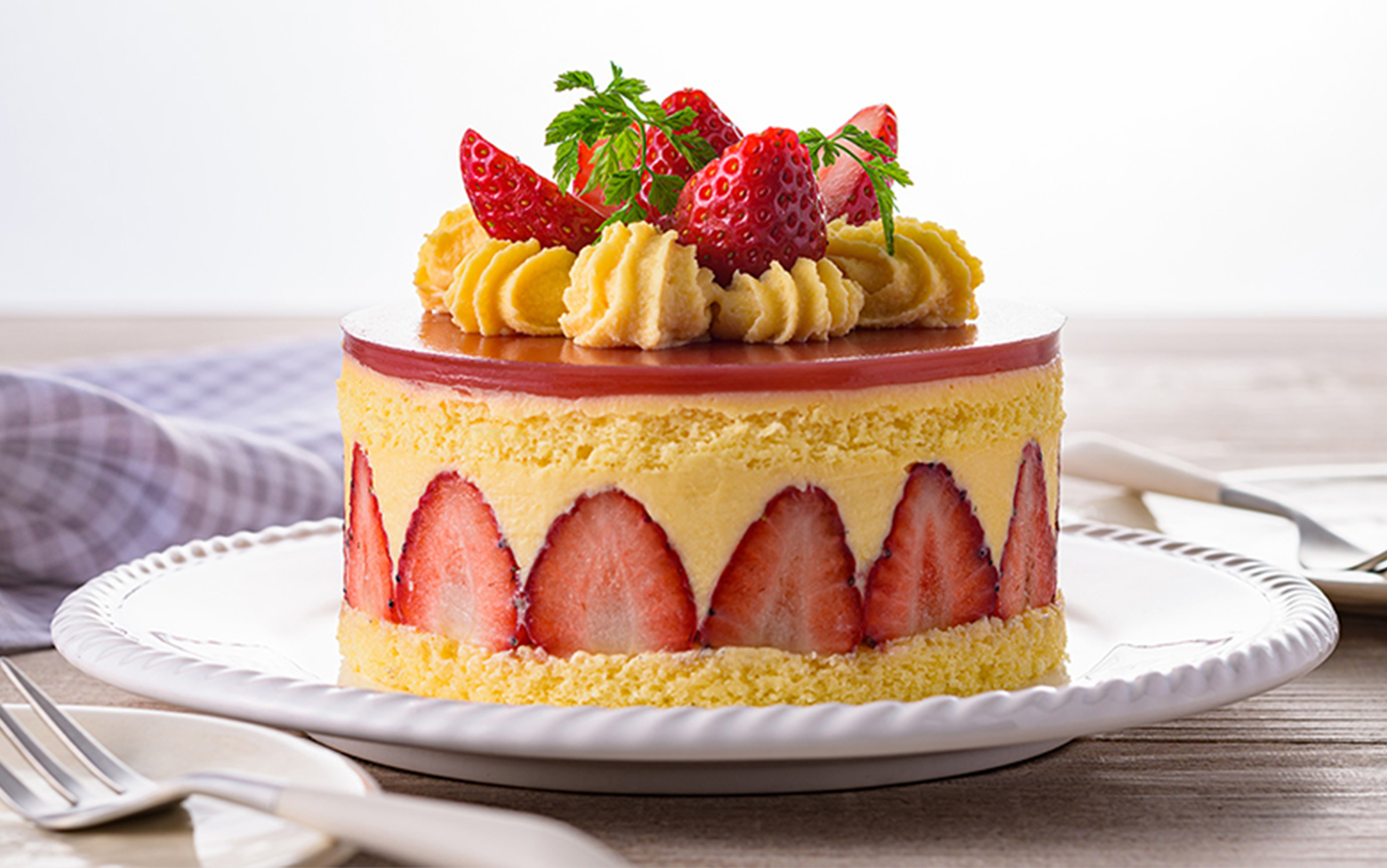 アーモンドミルクのカスタードクリームにバターを合わせた濃厚な味わいのクレームムースリーヌ、甘酸っぱいいちごをビスキュイで挟んだクラシカルなケーキ。フランスでは「春を告げるお菓子」としても有名です。