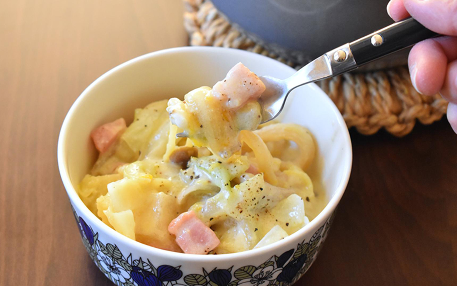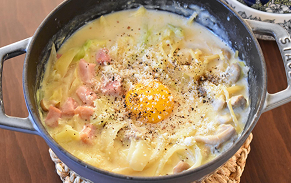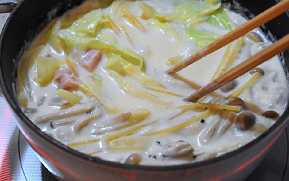 濃厚なのにヘルシー!「豆乳カルボナーラ鍋」のレシピ