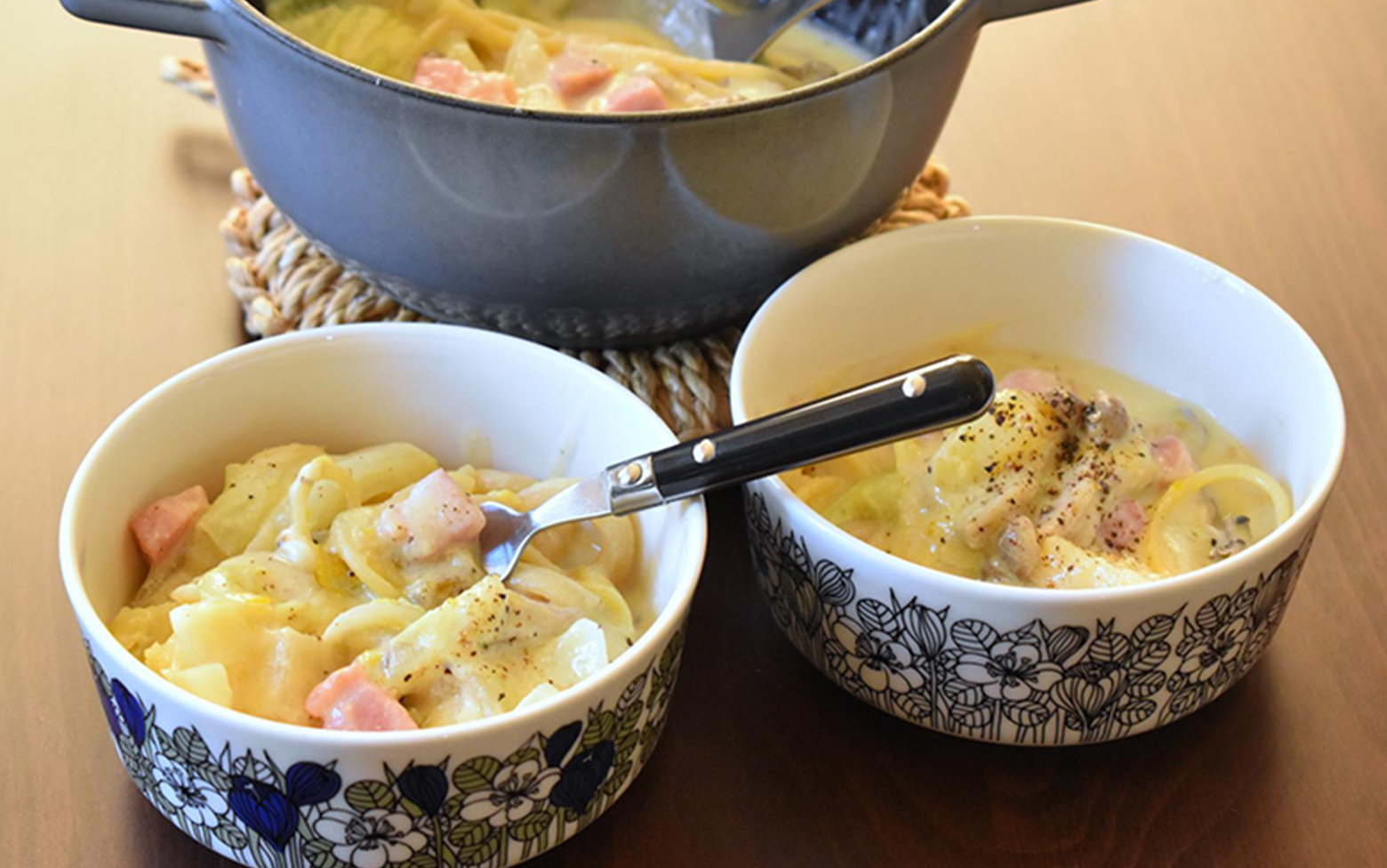 牛乳や生クリームがなくても、豆乳さえあれば濃厚な味わいの鍋料理が完成。具材を変えることで、アレンジも可能です。