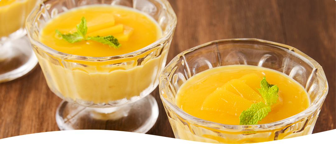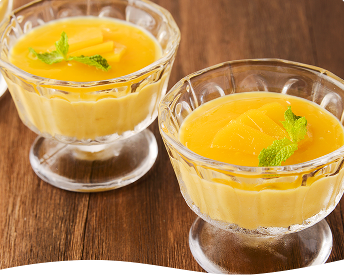 濃厚な豆乳の風味を生かした、マンゴープリンです。