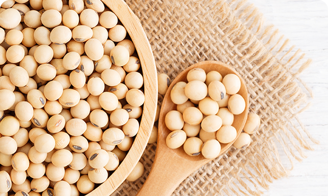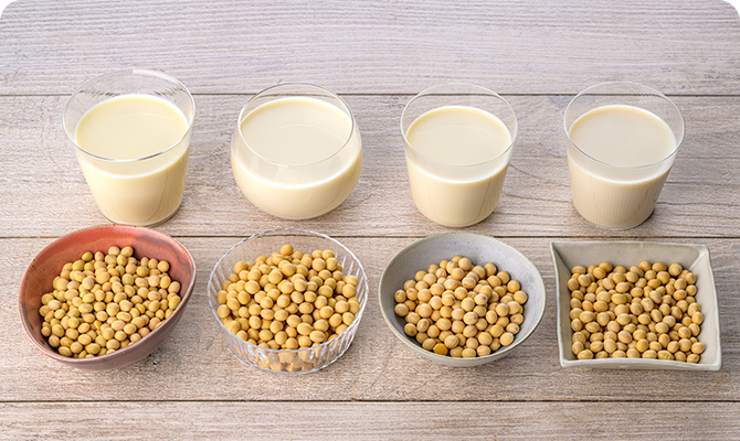 「ひとつ上の豆乳」シリーズには、「きぬさやか」と「すみさやか」を最良のバランスで配合した当社独自の「るりさやか®」を使用。絹のようになめらかな口当たりと、コクと旨みはしっかりありながらも雑味がなく、すっきりとした味わいを実現しています。