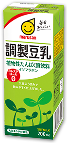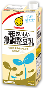 - マルサン豆乳は、素材本来のおいしさを活かした商品づくりを開発の基本スタンスとしており、極力余計なものは入れないようにしています。代表商品である「調製豆乳」は香料・油を使用せず、大豆本来のおいしさを引き立てた味わいに仕上げています。