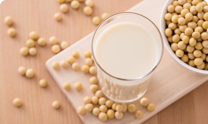 豆乳の青臭さや渋みは、大豆が持つ酵素「リポキシゲナーゼ」の働きが原因です。高温で加熱処理することで、熱に弱いリポキシゲナーゼの働きを抑え、大豆の風味を楽しめるおいしい豆乳を作っています。
