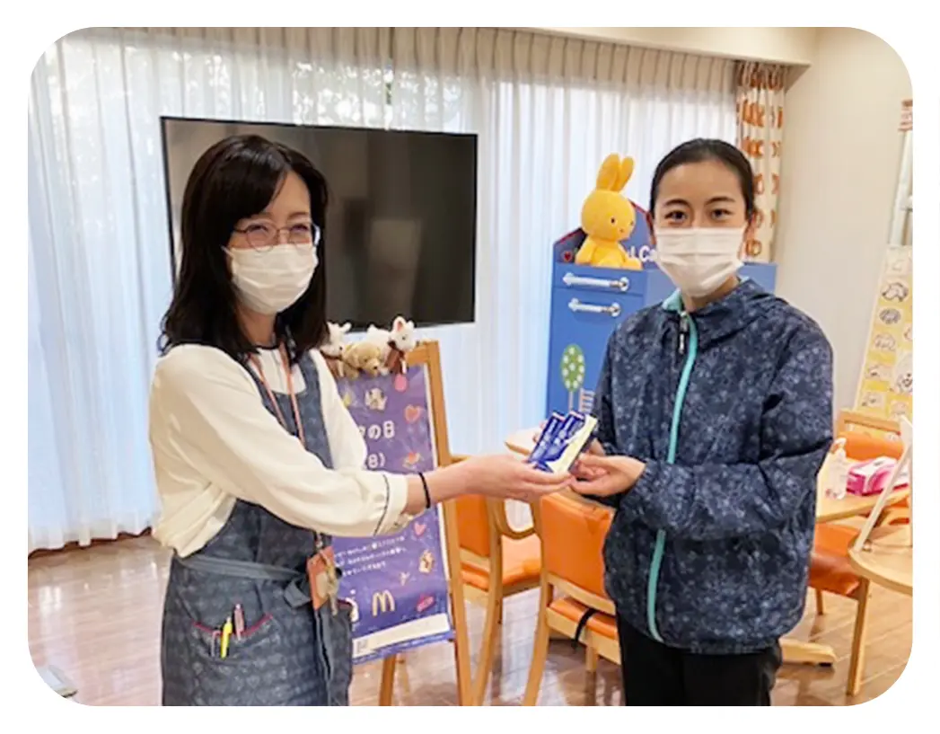 | 名古屋大学医学部附属病院 | 病室でお⼦様と付き添い⼊院中の親御様 |
