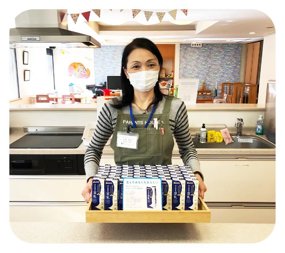 - 小児がん闘病中は食欲が落ちてしまう子どもも多い中で、沢山たんぱく質を取れる豆乳は本当にありがたいです。